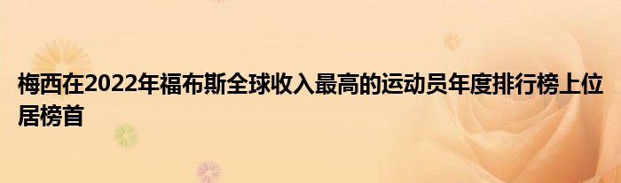 據《福布斯》雜志披露,梅西在過去12個月的收入達到了1.3億美元,這讓他在2022年《福布斯》全球收入最高的運動員年度排行榜上位居榜首,這也是他第二次位居榜首,上一次是在2019年。