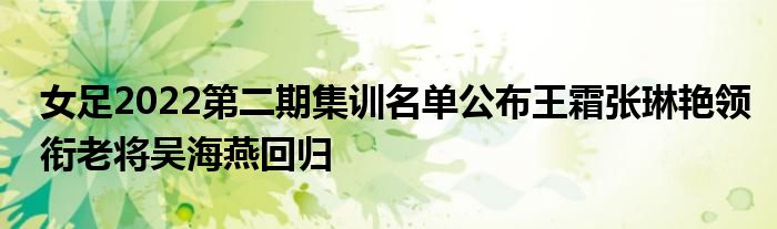 5月14日,中國女足2022第二期集訓名單公布,其中王霜,張琳艷領銜,老將吳海燕回歸。