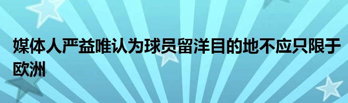 嚴(yán)益唯在文章中表示,在鼓勵(lì)球員留洋已經(jīng)達(dá)成共識(shí)的現(xiàn)今,中國球員和他們的經(jīng)紀(jì)人,應(yīng)該更務(wù)實(shí)地設(shè)計(jì)留洋的路線。不要把留洋等同于留歐,包括東南亞的職業(yè)聯(lián)賽都應(yīng)該認(rèn)真考慮。
