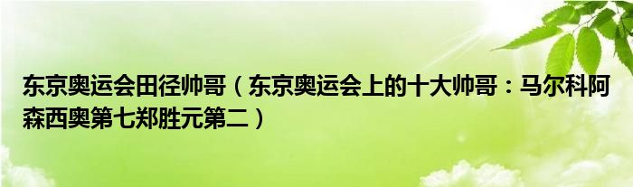 大家好,綜合小編來(lái)為大家講解下。東京奧運(yùn)會(huì)田徑帥哥,東京奧運(yùn)會(huì)上的十大帥哥:馬爾科阿森西奧第七鄭勝元第二很多人還不知道,現(xiàn)在讓我們一起來(lái)看看吧!