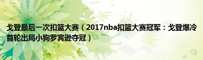 大家好,綜合小編來為大家講解下。戈登最后一次扣籃大賽,2017nba扣籃大賽冠軍:戈登爆冷首輪出局小狗羅賓遜奪冠很多人還不知道,現(xiàn)在讓我們一起來看看吧!
