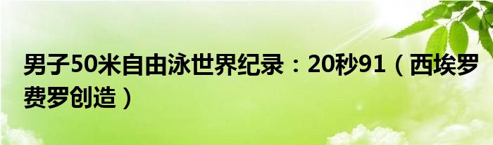 大家好,綜合小編來為大家講解下。男子50米自由泳世界紀(jì)錄:20秒91,西埃羅費羅創(chuàng)造很多人還不知道,現(xiàn)在讓我們一起來看看吧!