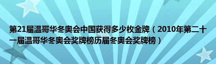 大家好,綜合小編來(lái)為大家講解下。第21屆溫哥華冬奧會(huì)中國(guó)獲得多少枚金牌,2010年第二十一屆溫哥華冬奧會(huì)獎(jiǎng)牌榜歷屆冬奧會(huì)獎(jiǎng)牌榜很多人還不知道,現(xiàn)在讓我們一起來(lái)看看吧!