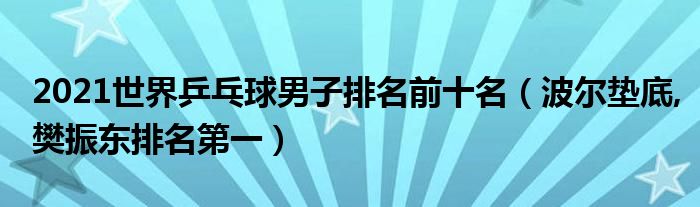 大家好,綜合小編來為大家講解下。2021世界乒乓球男子排名前十名,波爾墊底,樊振東排名第一很多人還不知道,現(xiàn)在讓我們一起來看看吧!