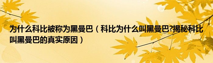 大家好,綜合小編來為大家講解下。為什么科比被稱為黑曼巴,科比為什么叫黑曼巴?揭秘科比叫黑曼巴的真實原因很多人還不知道,現(xiàn)在讓我們一起來看看吧!