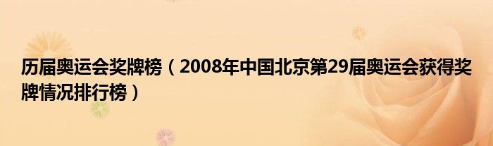 大家好,綜合小編來為大家講解下。歷屆奧運會獎牌榜,2008年中國北京第29屆奧運會獲得獎牌情況排行榜很多人還不知道,現在讓我們一起來看看吧!