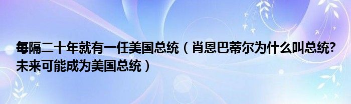 大家好,綜合小編來為大家講解下。每隔二十年就有一任美國總統(tǒng),肖恩巴蒂爾為什么叫總統(tǒng)?未來可能成為美國總統(tǒng)很多人還不知道,現(xiàn)在讓我們一起來看看吧!
