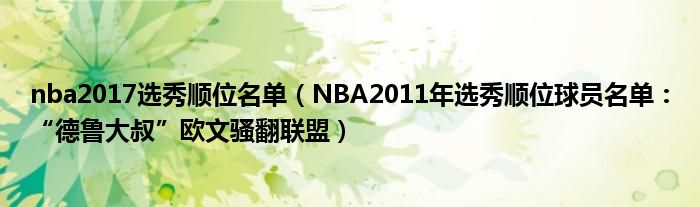 大家好,綜合小編來為大家講解下。nba2017選秀順位名單,NBA2011年選秀順位球員名單:“德魯大叔”歐文騷翻聯盟很多人還不知道,現在讓我們一起來看看吧!