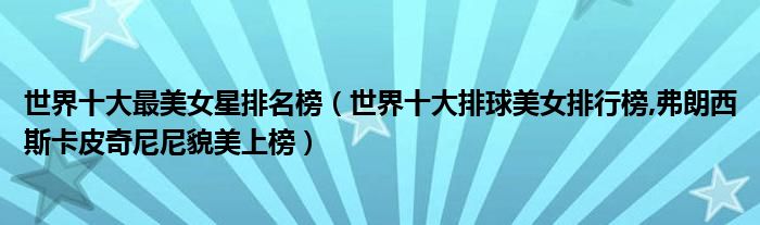 大家好,綜合小編來為大家講解下。世界十大最美女星排名榜,世界十大排球美女排行榜,弗朗西斯卡皮奇尼尼貌美上榜很多人還不知道,現(xiàn)在讓我們一起來看看吧!