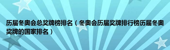 大家好,綜合小編來為大家講解下。歷屆冬奧會總獎牌榜排名,冬奧會歷屆獎牌排行榜歷屆冬奧獎牌的國家排名很多人還不知道,現在讓我們一起來看看吧!