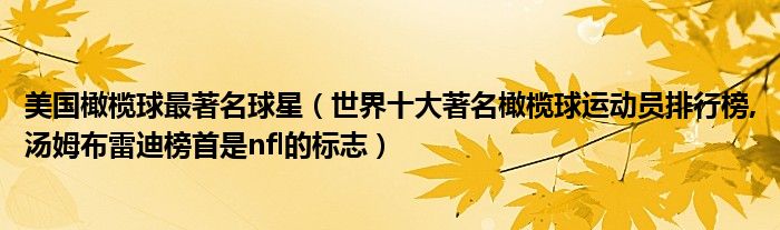 大家好,綜合小編來為大家講解下。美國橄欖球最著名球星,世界十大著名橄欖球運動員排行榜,湯姆布雷迪榜首是nfl的標志很多人還不知道,現在讓我們一起來看看吧!