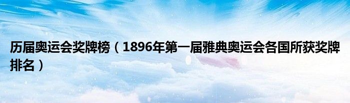 大家好,綜合小編來為大家講解下。歷屆奧運會獎牌榜,1896年第一屆雅典奧運會各國所獲獎牌排名很多人還不知道,現在讓我們一起來看看吧!