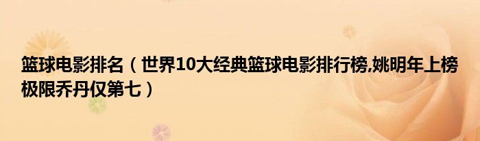 大家好,綜合小編來為大家講解下。籃球電影排名,世界10大經典籃球電影排行榜,姚明年上榜極限喬丹僅第七很多人還不知道,現在讓我們一起來看看吧!