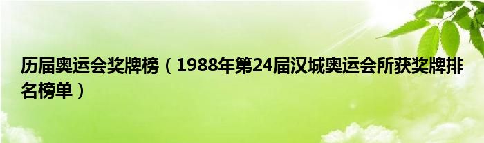 大家好,綜合小編來為大家講解下。歷屆奧運會獎牌榜,1988年第24屆漢城奧運會所獲獎牌排名榜單很多人還不知道,現(xiàn)在讓我們一起來看看吧!
