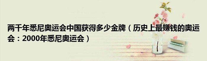 大家好,綜合小編來為大家講解下。兩千年悉尼奧運會中國獲得多少金牌,歷史上最賺錢的奧運會:2000年悉尼奧運會很多人還不知道,現在讓我們一起來看看吧!
