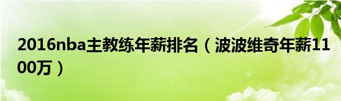 大家好,綜合小編來為大家講解下。2016nba主教練年薪排名,波波維奇年薪1100萬很多人還不知道,現在讓我們一起來看看吧!