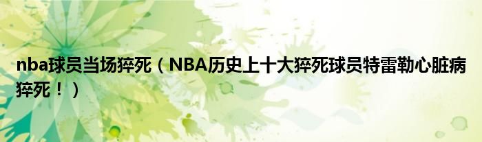 大家好,綜合小編來為大家講解下。nba球員當場猝死,NBA歷史上十大猝死球員特雷勒心臟病猝死!很多人還不知道,現在讓我們一起來看看吧!