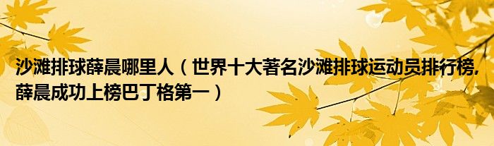 大家好,綜合小編來(lái)為大家講解下。沙灘排球薛晨哪里人,世界十大著名沙灘排球運(yùn)動(dòng)員排行榜,薛晨成功上榜巴丁格第一很多人還不知道,現(xiàn)在讓我們一起來(lái)看看吧!