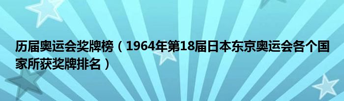 大家好,綜合小編來為大家講解下。歷屆奧運會獎牌榜,1964年第18屆日本東京奧運會各個國家所獲獎牌排名很多人還不知道,現在讓我們一起來看看吧!