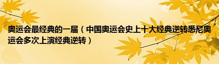 大家好,綜合小編來(lái)為大家講解下。奧運(yùn)會(huì)最經(jīng)典的一屆,中國(guó)奧運(yùn)會(huì)史上十大經(jīng)典逆轉(zhuǎn)悉尼奧運(yùn)會(huì)多次上演經(jīng)典逆轉(zhuǎn)很多人還不知道,現(xiàn)在讓我們一起來(lái)看看吧!