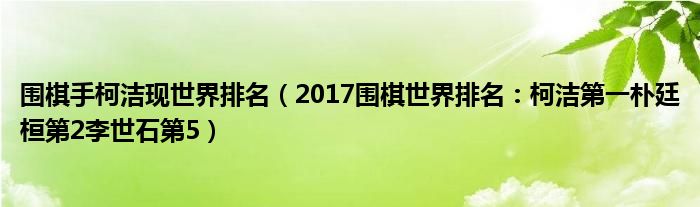 大家好,綜合小編來為大家講解下。圍棋手柯潔現(xiàn)世界排名,2017圍棋世界排名:柯潔第一樸廷桓第2李世石第5很多人還不知道,現(xiàn)在讓我們一起來看看吧!