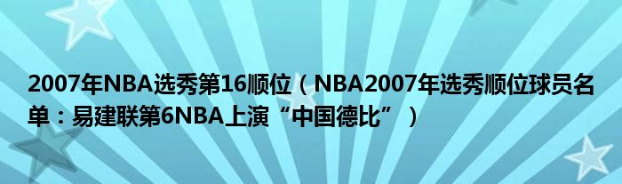 大家好,綜合小編來為大家講解下。2007年NBA選秀第16順位,NBA2007年選秀順位球員名單:易建聯第6NBA上演“中國德比”很多人還不知道,現在讓我們一起來看看吧!