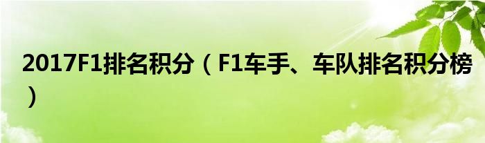 大家好,綜合小編來為大家講解下。2017F1排名積分,F1車手、車隊排名積分榜很多人還不知道,現在讓我們一起來看看吧!