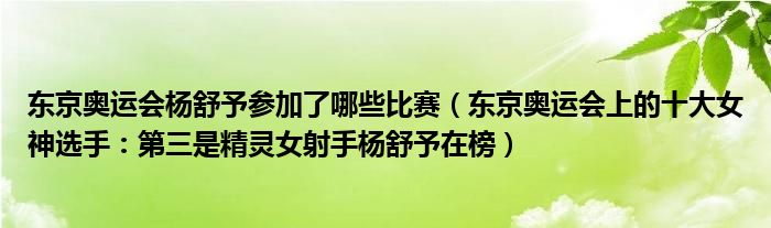 大家好,綜合小編來為大家講解下。東京奧運會楊舒予參加了哪些比賽,東京奧運會上的十大女神選手:第三是精靈女射手楊舒予在榜很多人還不知道,現在讓我們一起來看看吧!
