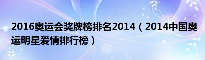 大家好,綜合小編來為大家講解下。2016奧運會獎牌榜排名2014,2014中國奧運明星愛情排行榜很多人還不知道,現在讓我們一起來看看吧!