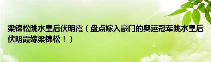 大家好,綜合小編來為大家講解下。梁錦松跳水皇后伏明霞,盤點嫁入豪門的奧運冠軍跳水皇后伏明霞嫁梁錦松!很多人還不知道,現在讓我們一起來看看吧!