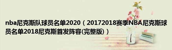 大家好,綜合小編來為大家講解下。nba尼克斯隊球員名單2020,20172018賽季NBA尼克斯球員名單2018尼克斯首發陣容(完整版)很多人還不知道,現在讓我們一起來看看吧!
