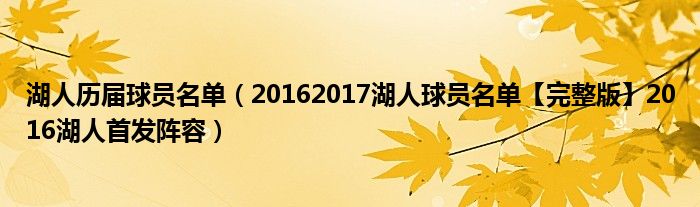 大家好,綜合小編來為大家講解下。湖人歷屆球員名單,20162017湖人球員名單【完整版】2016湖人首發陣容很多人還不知道,現在讓我們一起來看看吧!