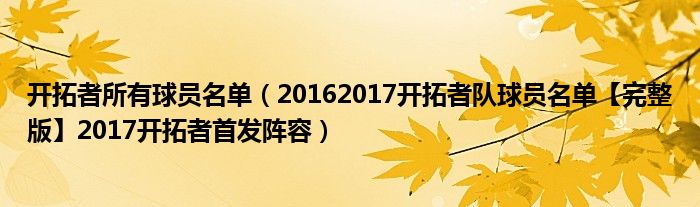 大家好,綜合小編來為大家講解下。開拓者所有球員名單,20162017開拓者隊球員名單【完整版】2017開拓者首發陣容很多人還不知道,現在讓我們一起來看看吧!