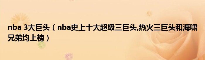 大家好,綜合小編來(lái)為大家講解下。nba 3大巨頭,nba史上十大超級(jí)三巨頭,熱火三巨頭和海嘯兄弟均上榜很多人還不知道,現(xiàn)在讓我們一起來(lái)看看吧!