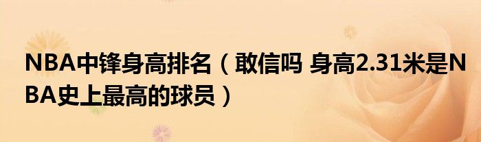 大家好,綜合小編來為大家講解下。NBA中鋒身高排名,敢信嗎 身高2.31米是NBA史上最高的球員很多人還不知道,現在讓我們一起來看看吧!