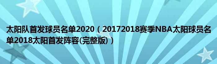 大家好,綜合小編來為大家講解下。太陽隊首發球員名單2020,20172018賽季NBA太陽球員名單2018太陽首發陣容(完整版)很多人還不知道,現在讓我們一起來看看吧!