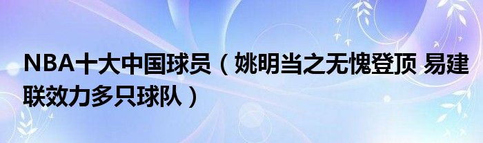 大家好,綜合小編來為大家講解下。NBA十大中國球員,姚明當之無愧登頂 易建聯效力多只球隊很多人還不知道,現在讓我們一起來看看吧!