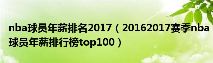 2016-2017賽季nba球員年薪排行榜top100:球員 2016-17賽季(年薪) 球隊
