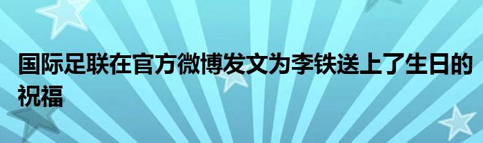 5月18日是前中國男足主帥李鐵45歲生日,國際足聯(lián)在官方微博發(fā)文為他送上了生日的祝福。
