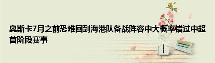 5月18日,有巴西媒體報道稱,中超上海海港隊的巴西籍外援奧斯卡目前人身在巴西,近期還曾赴巴西乙級聯賽格雷米奧俱樂部探望曾經的隊友、中國國腳艾克森。據了解,奧斯卡的家事目前已接近處理完畢。海港俱樂部也已著手幫他辦理重返中國的各項手續。受疫情及國際旅行條件受限等因素影響,奧斯卡7月之前恐難回到海港隊備戰陣容中,大概率錯過中超首階段賽事。