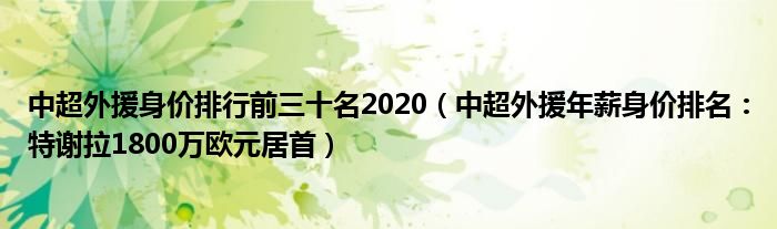 大家好,綜合小編來為大家講解下。中超外援身價排行前三十名2020,中超外援年薪身價排名:特謝拉1800萬歐元居首很多人還不知道,現在讓我們一起來看看吧!