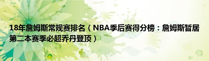 大家好,綜合小編來為大家講解下。18年詹姆斯常規賽排名,NBA季后賽得分榜:詹姆斯暫居第二本賽季必超喬丹登頂很多人還不知道,現在讓我們一起來看看吧!