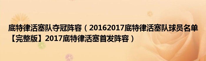 大家好,綜合小編來為大家講解下。底特律活塞隊奪冠陣容,20162017底特律活塞隊球員名單【完整版】2017底特律活塞首發陣容很多人還不知道,現在讓我們一起來看看吧!