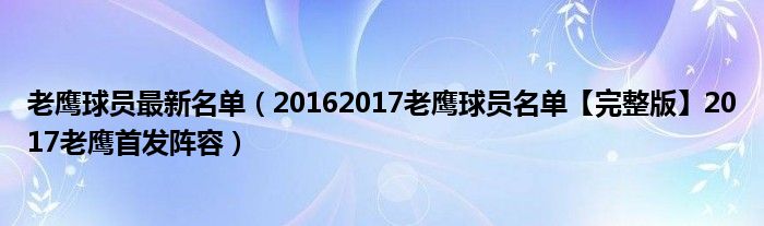 大家好,綜合小編來(lái)為大家講解下。老鷹球員最新名單,20162017老鷹球員名單【完整版】2017老鷹首發(fā)陣容很多人還不知道,現(xiàn)在讓我們一起來(lái)看看吧!