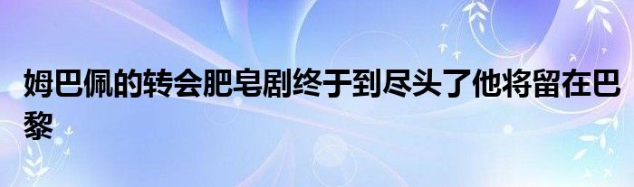 姆巴佩的轉會肥皂劇終于到盡頭了,他將留在巴黎。