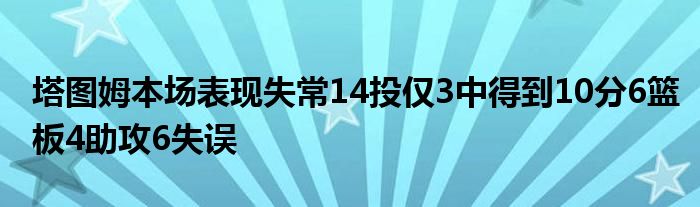 昨天進行的東部決賽G3,凱爾特人不敵熱火,目前大比分1-2落后。塔圖姆本場表現失常,14投僅3中得到10分6籃板4助攻6失誤。