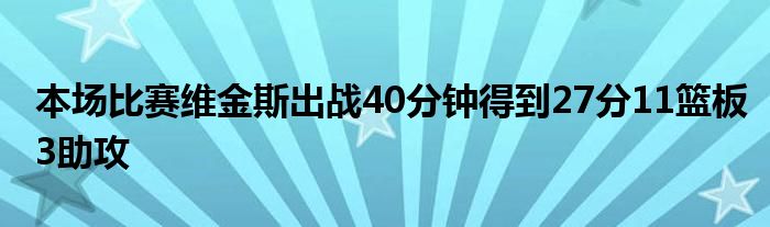 本場比賽維金斯出戰(zhàn)40分鐘,20投11中,三分5中1,罰球5中4,得到27分11籃板3助攻;追夢10投5中,貢獻(xiàn)10分5籃板5助攻2搶斷1蓋帽。
