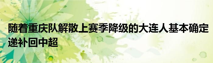 隨著重慶隊(duì)解散,上賽季降級的大連人基本確定遞補(bǔ)回中超。5月26日,據(jù)記者劉聞超消息,上海嘉定匯龍隨之將遞補(bǔ)獲得中甲資格。