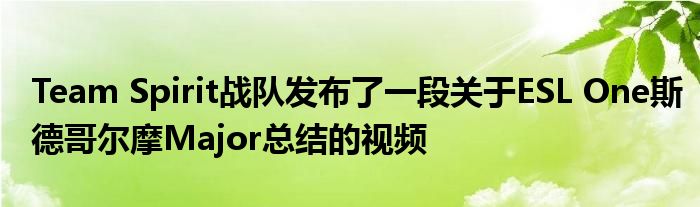 Team Spirit戰(zhàn)隊(duì)發(fā)布了一段關(guān)于ESL One斯德哥爾摩Major總結(jié)的視頻。在視頻中,Miposhka和TORONTOTOKYO以及戰(zhàn)隊(duì)經(jīng)理Korb3n反思了戰(zhàn)隊(duì)近期表現(xiàn)。