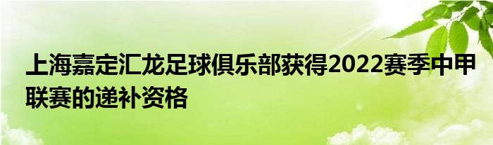 上海嘉定匯龍足球俱樂部獲得2022賽季中甲聯賽的遞補資格,待俱樂部提交準入材料并經中國足協審查通過后,獲得2022賽季中甲聯賽參賽資格。2022賽季中甲聯賽規模為18家俱樂部。
